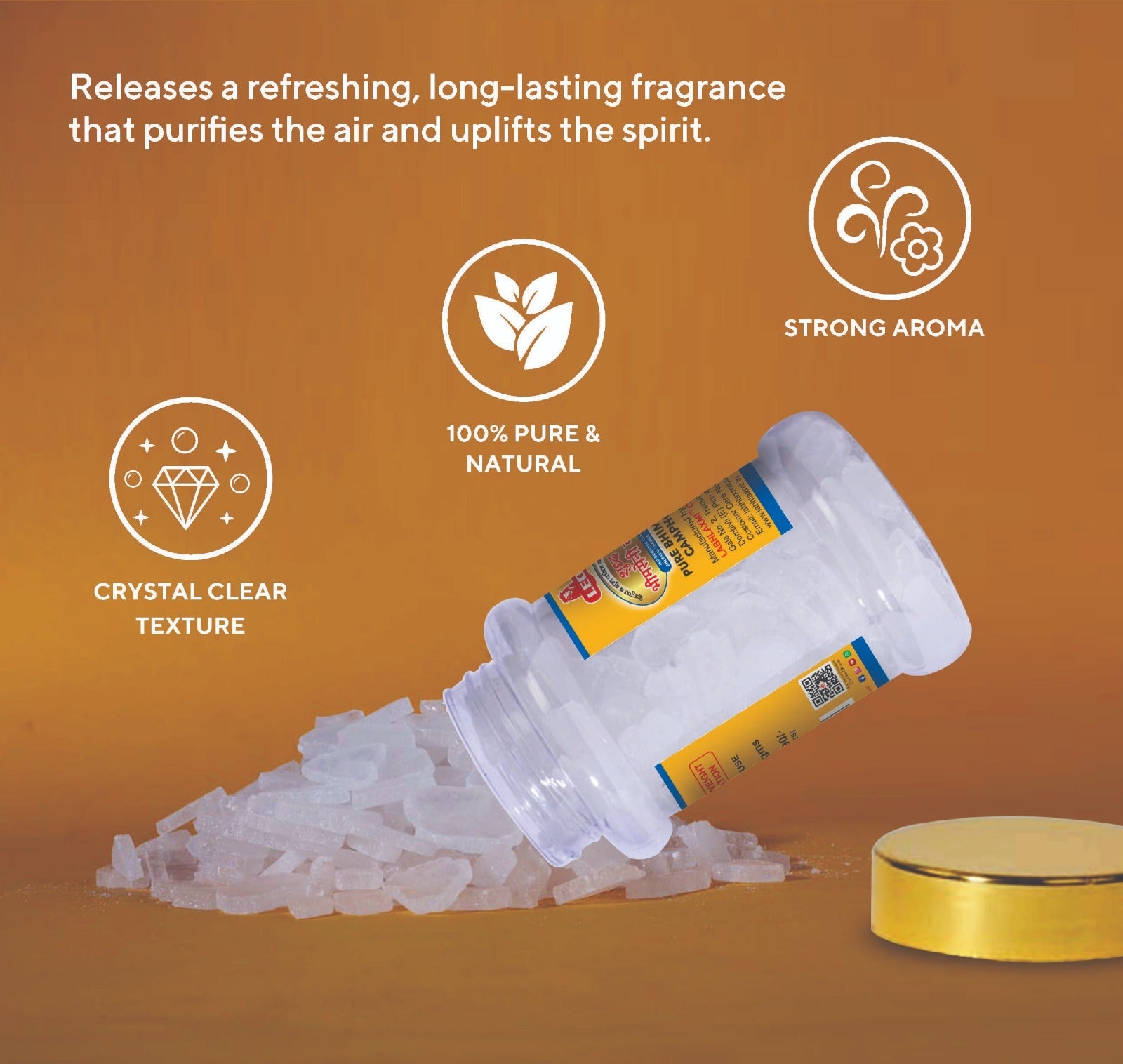 When burned, Bhimseni camphor releases a refreshing and soothing aroma that helps purify the surroundings and create a peaceful atmosphere. Its natural properties make it a preferred choice for temples, homes, and meditation spaces.